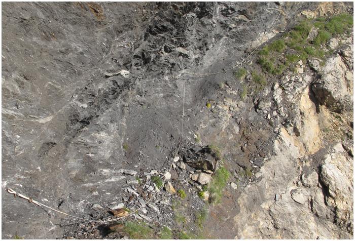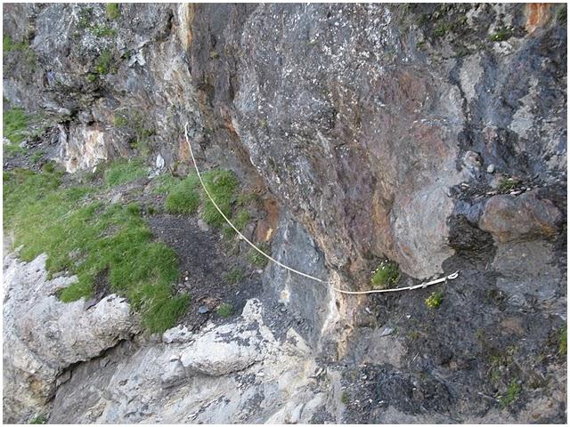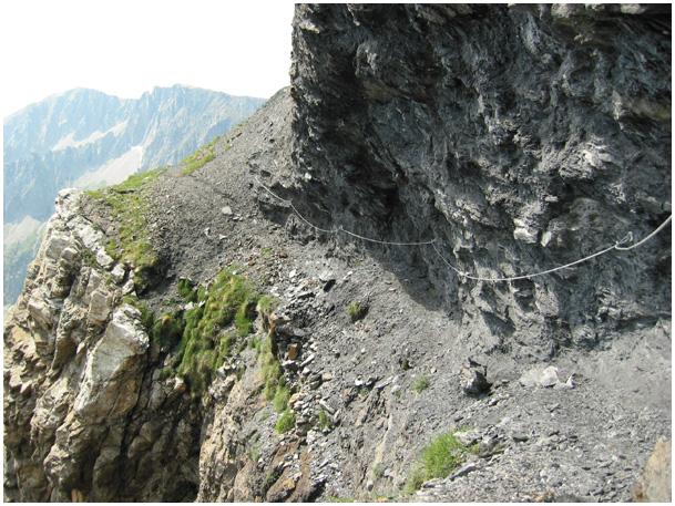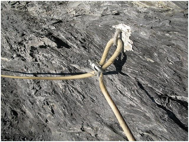main courante, planté dans la falaise d'ampélite (photo