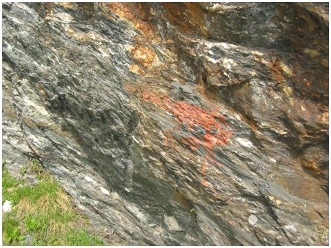 dans sa partie en contact avec la roche, en l'occurence l'ampélite,