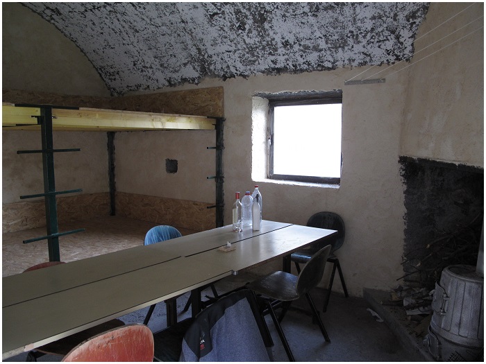 à droite :l'intérieur de la cabane après la pose de l'enduit