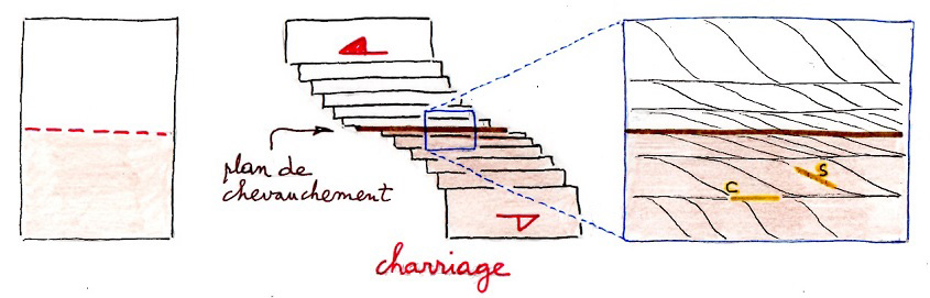 à un charriage dans les Alpes, et décrit un chevauchement dans