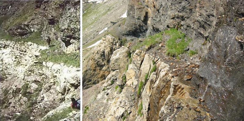 droite (c'est-à-dire de haut en bas) : les schistes grisâtres,