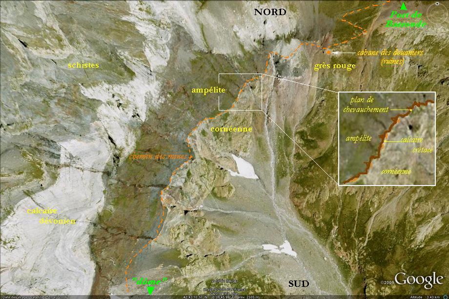 anormal" puisque des roches anciennes reposent sur une roche plus récente).
