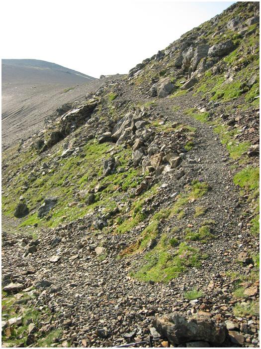 et dont les lacets sont coupés plus bas par le sentier actuel.