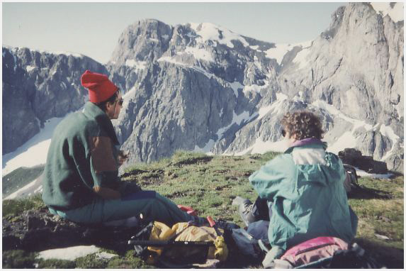 à droite, à la base de la face est du pic Robiñera.
