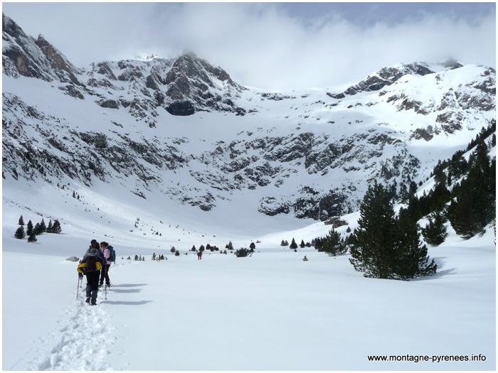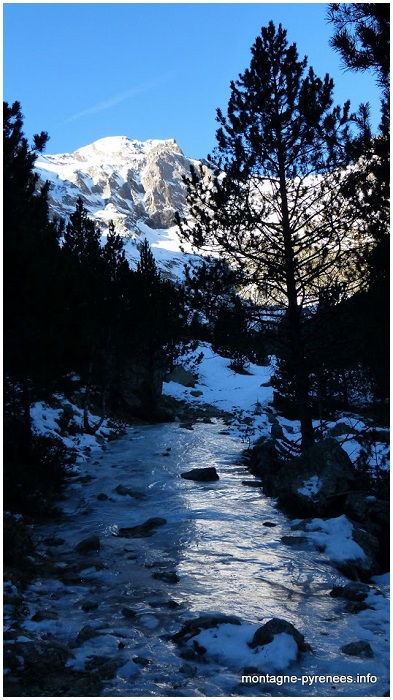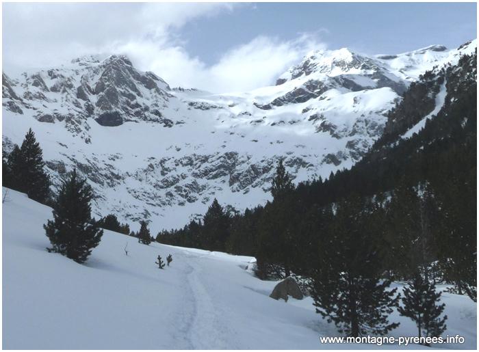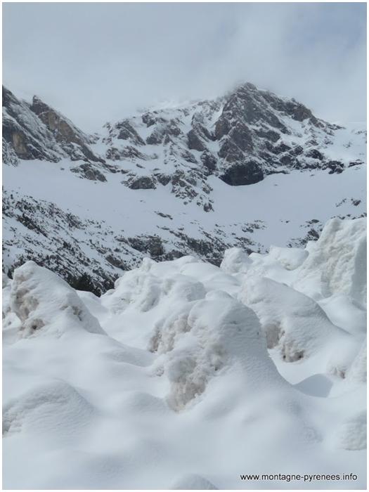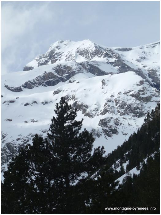 le sommet enneigé du pic de Troumouse. A droite : le port