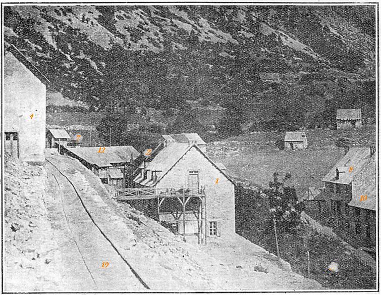 | Des haldes, la laverie, et la conduite forcée pour la centrale électrique | La centrale électrique |