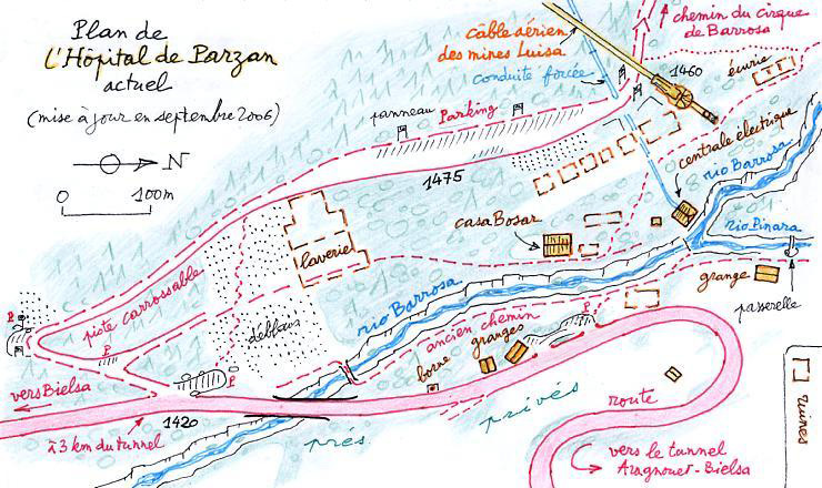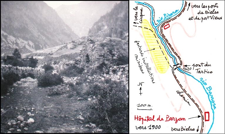 (avec calque explicatif ci-contre) du site auquel l'Hôpital de Parzan