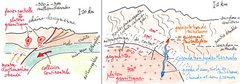 600-700°), dans les profondeurs de la chaîne de montagne hercynienne (formée