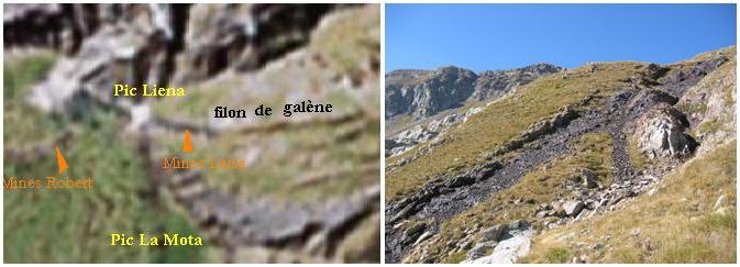 glaciaire encadré par les pics Liena et La Mota, le filon de galène