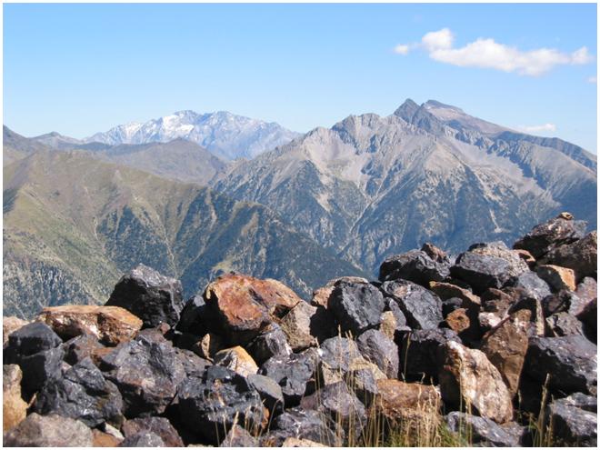 rocheux sur l'arête est du pic Liena.