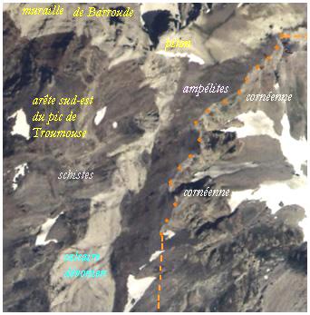 crête qui la sépare du cirque de Troumouse est constituée