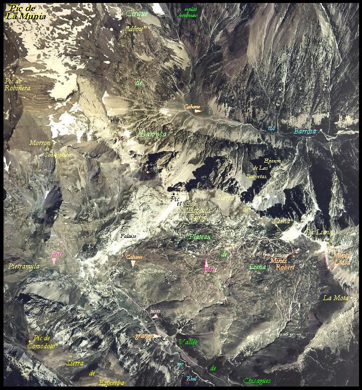 mines "Luisa" dans le granite du versant est du pic Liena), la piste