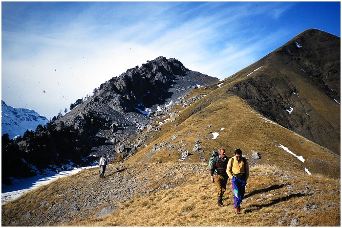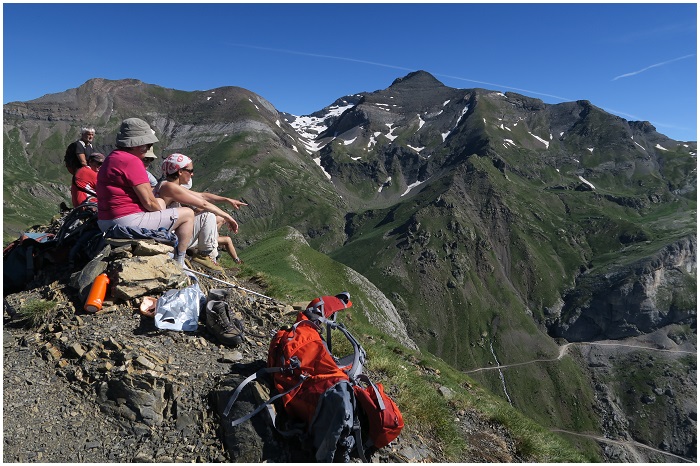 randonneurs, entre pic Cuezo (à gauche) et pic Montinier.