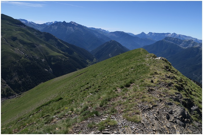 est masquée par un repli de la pelouse). L'arête (la ralla Costadué)