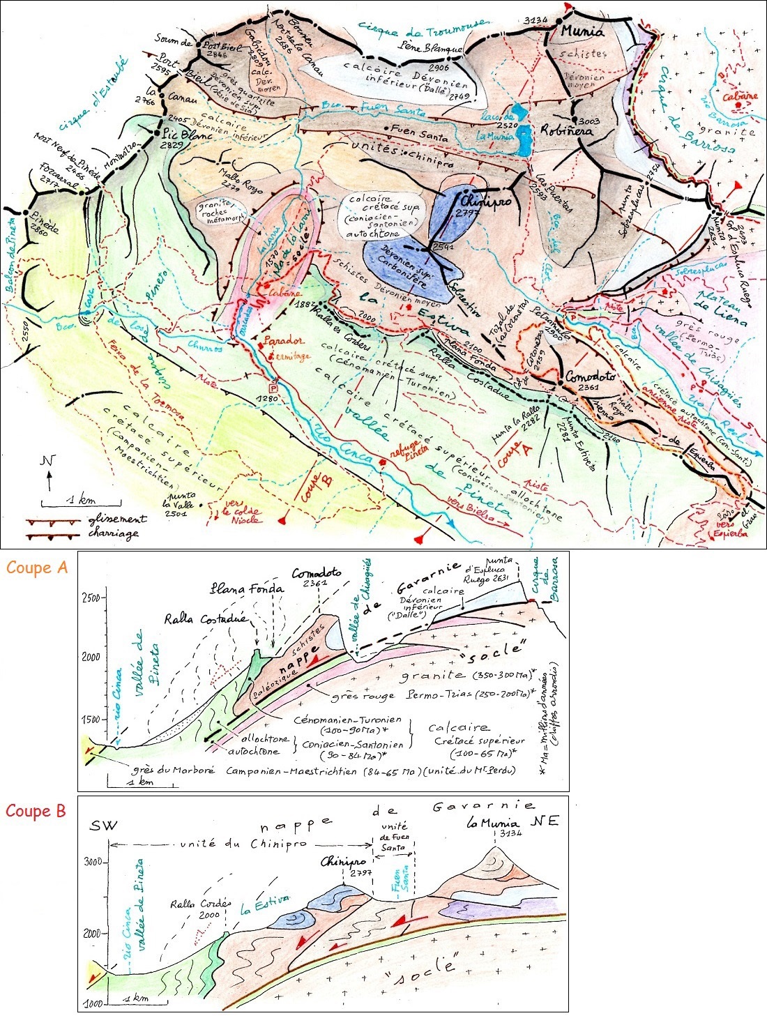1. Dans le site du Géoparc de Sobrarbe (www.geoparquepirineos.com) on trouvera, dans une page consacrée aux "géoroutes à pied" qu'il a créées, un lien pour la géoroute "PN5 Pineta-Valle de La Larri", dont le contenu est le même que celui de ce guide géologique. Il est possible de télécharger directement le Pdf correspondant en cliquant ici.