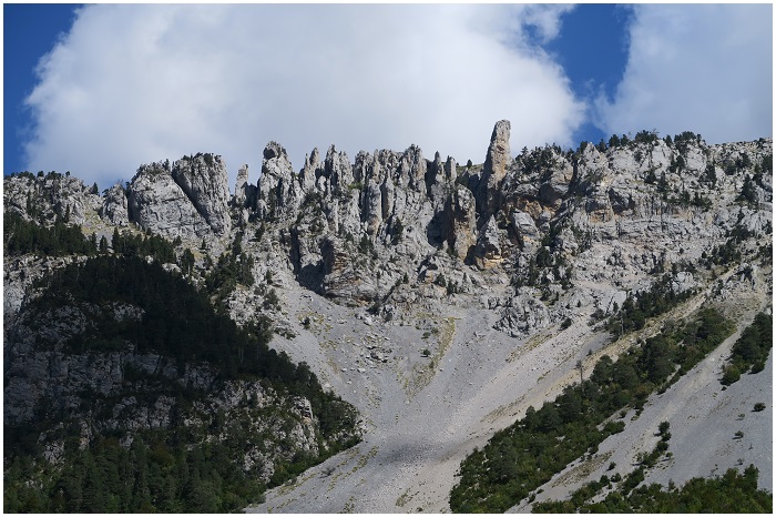crétacés qui la recouvraient, plissée dans le pic Blanc
