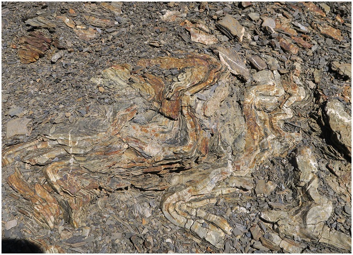 au pic de Chinipro (remarquer le "S" dans les terrains carbonifères