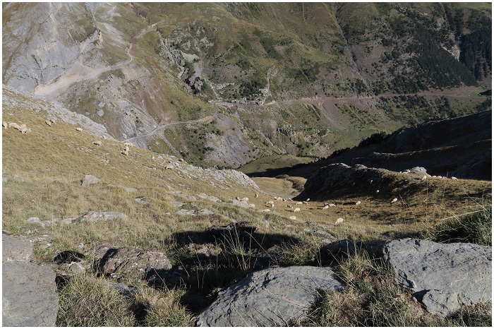 vers le pic Chinipro. On voit bien aussi la pente est où les mouttons