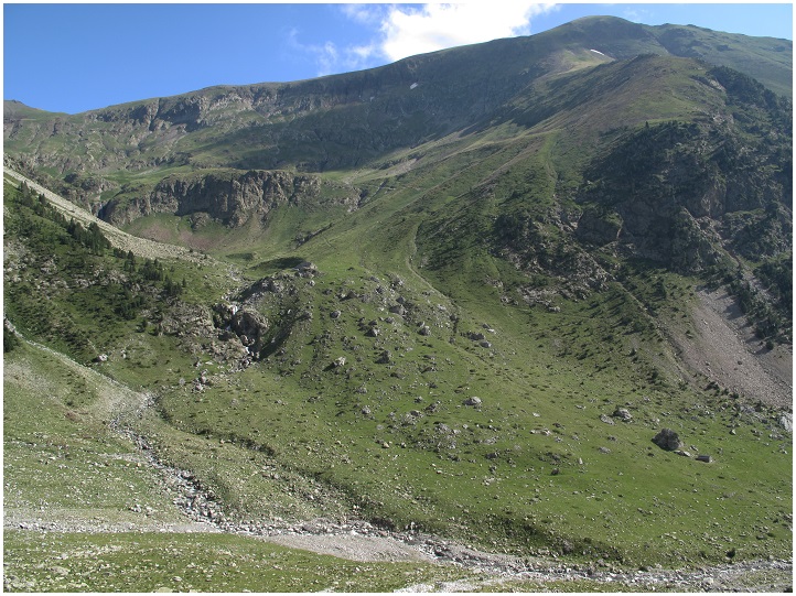 PHOTO montrant le versant ouest du pic Barrosa, avec à sa base,