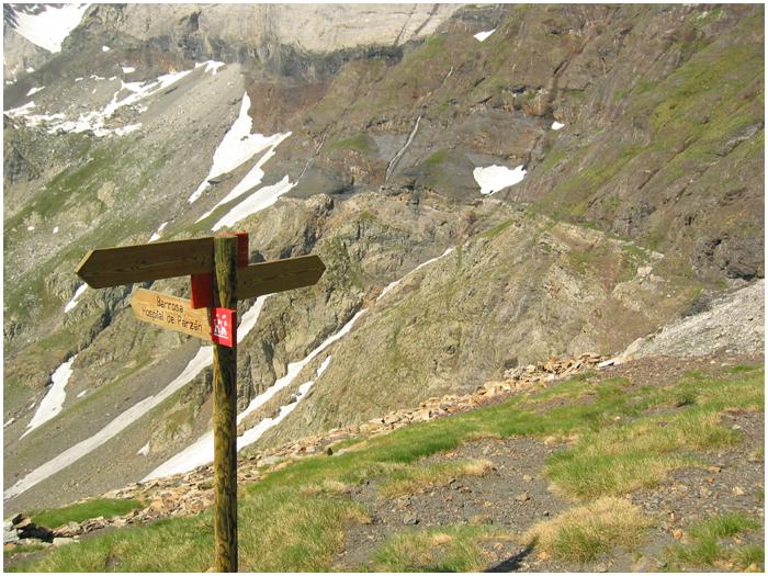 du fond du cirque au port de Barroude une pancarte signale le départ