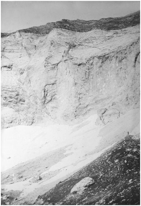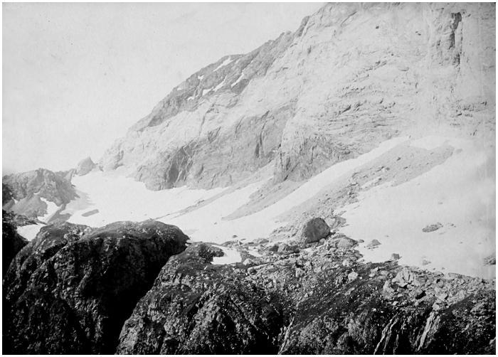 au pied de la muraille, descendant jusqu'à la moraine, et dont on peut