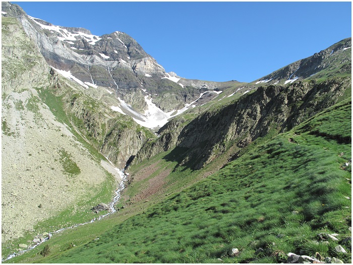 Au-dessous, dans les pelouses du flanc sud-ouest du pic Barrosa, on voit le