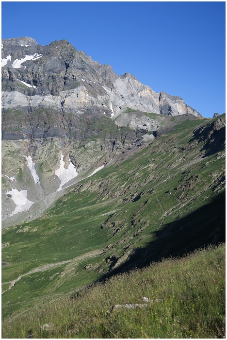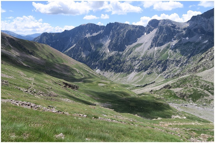 chemin du port de Barroude, vue plongeante sur le replat herbeux