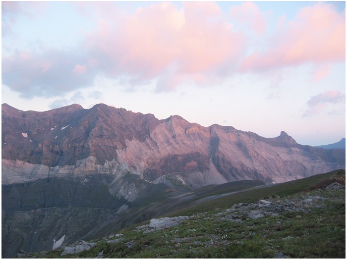 l'ouest) sur la muraille de Barroude entre le pic Heïd à