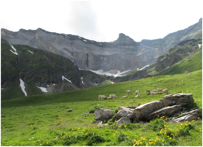 et au-dessus, des "barres" rocheuses (le Pichous de Barroude,