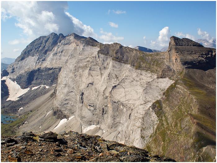 Gerbats (2904 m), au-dessus de la falaise de calcaire dévonien
