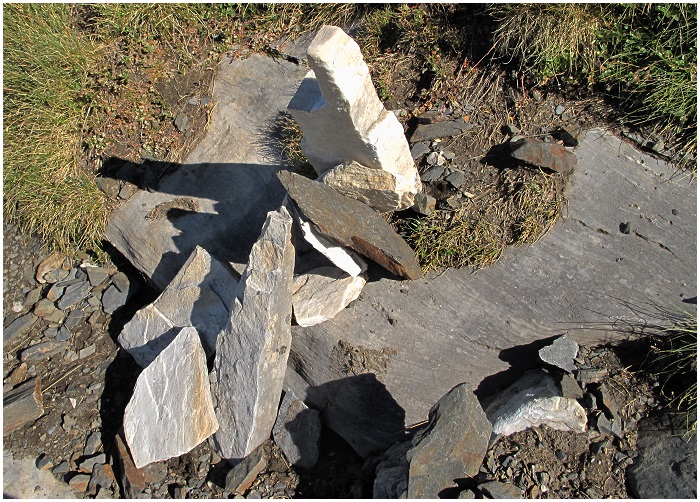 parfois une base faite de calcschiste (calcaire stratifié se débitant