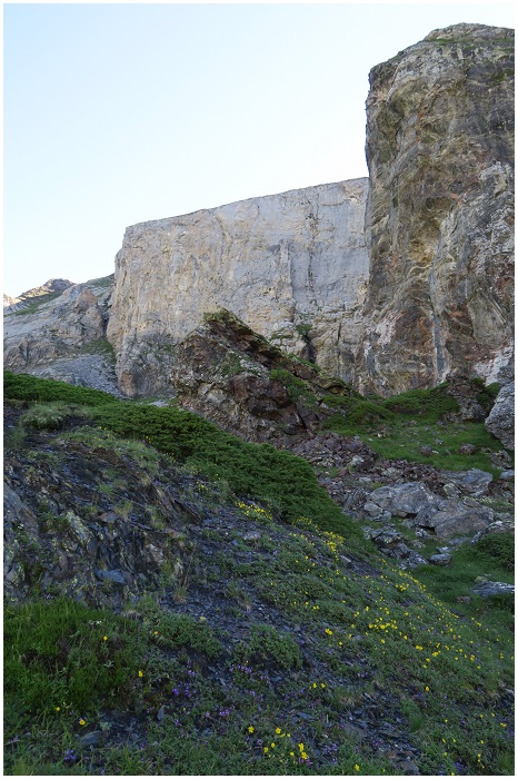 nord, à l'Ouest du pic de la Sède, au pied de la falaise qui