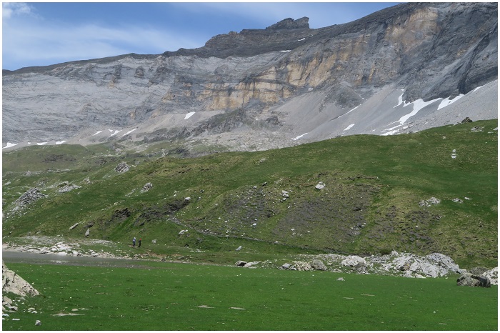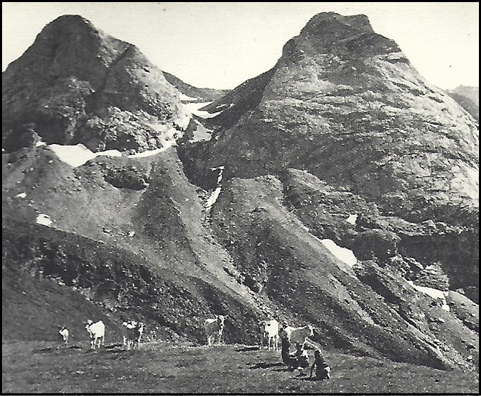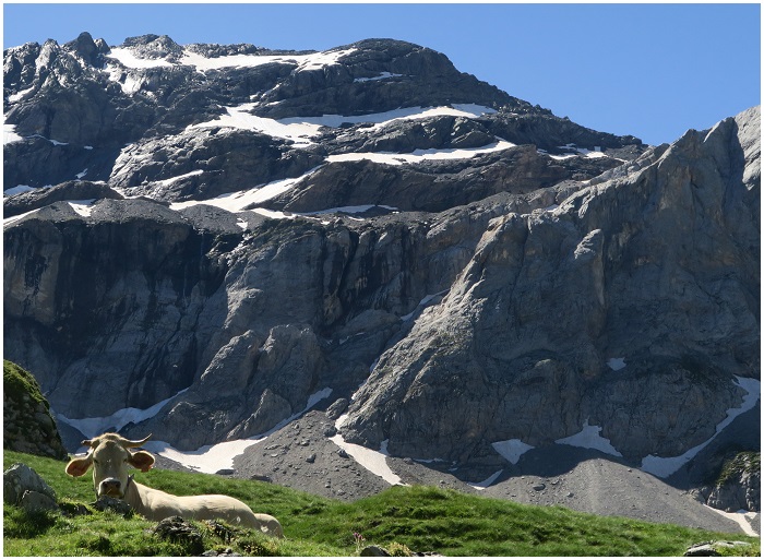 avec en toile de fond les falaises du cirque de Troumouse, principalement