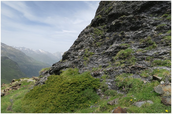flanc sud-ouest du pic de la Sède, un peu au-dessus du plan de chevauchement
