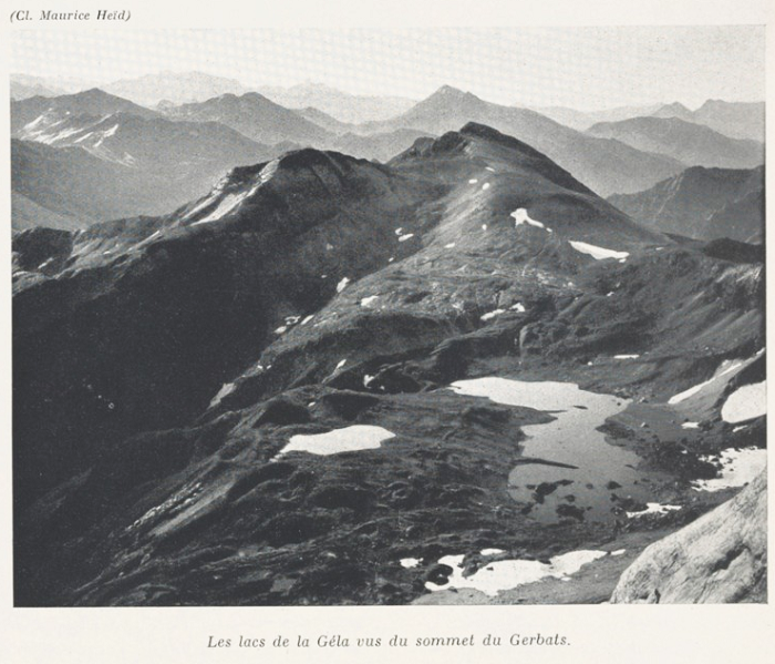 - en bas : Les lacs de la Géla vus du sommet du Gerbats.