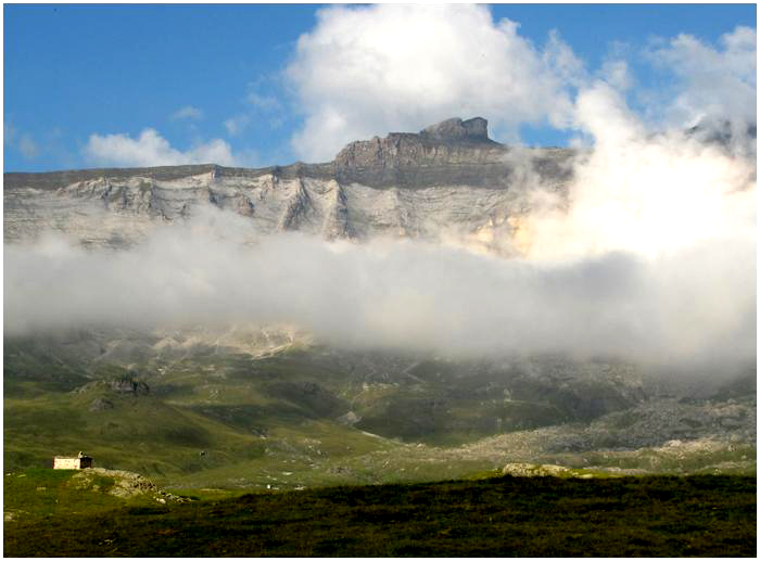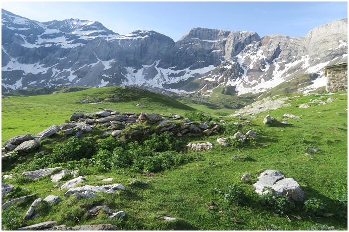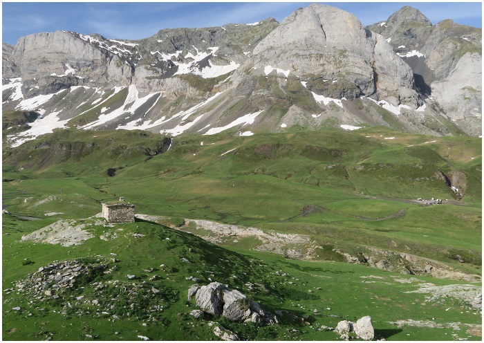 de Troumouse (à gauche : la cabane de la Vierge). On voit bien