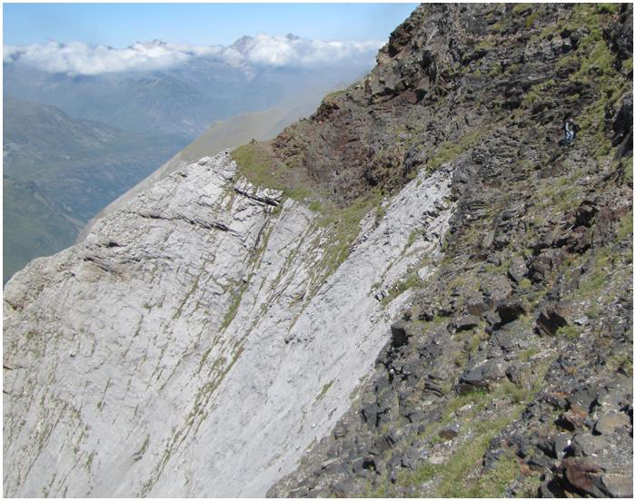 que la franche limite entre ce calcaire blanc et le schiste brun dont le sommet