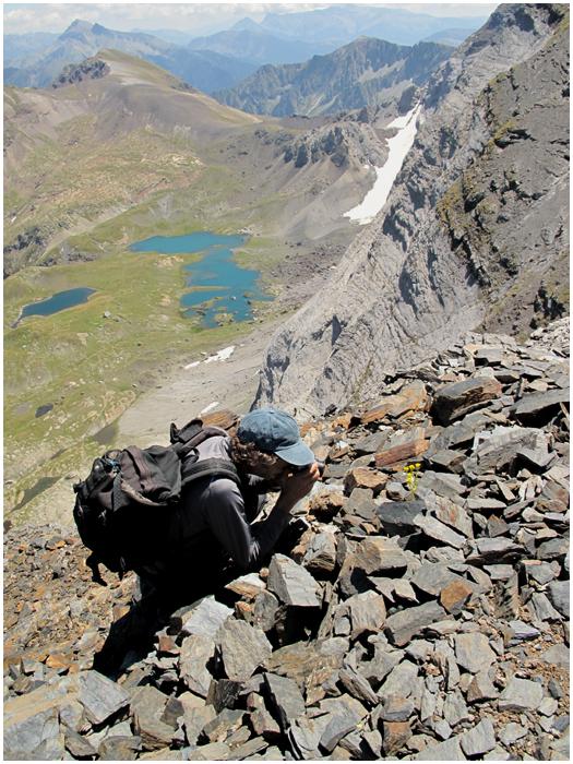 l'éboulis à mi-hauteur vers la gauche pour basculer sur le versant