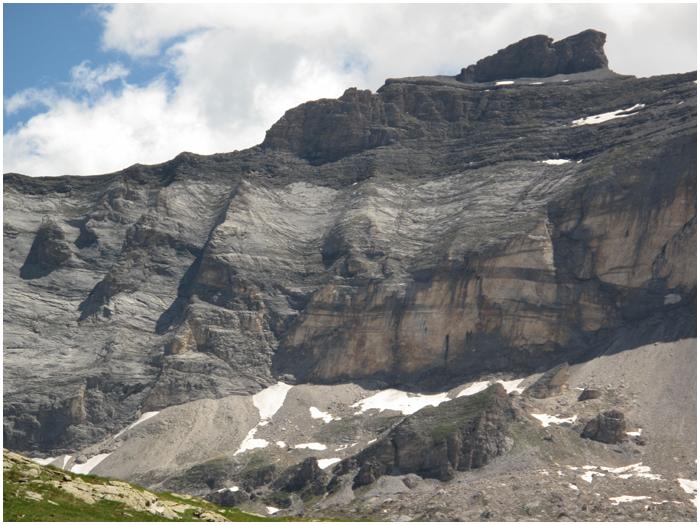 A l'arrière plan : le sud de la paroi du cirque, à gauche de