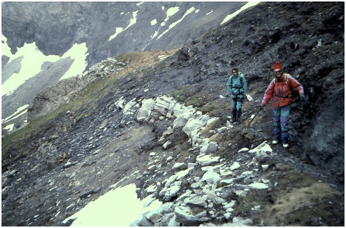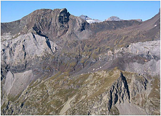 la falaise calcaire à la partie schisteuse du pic, qui est elle plus