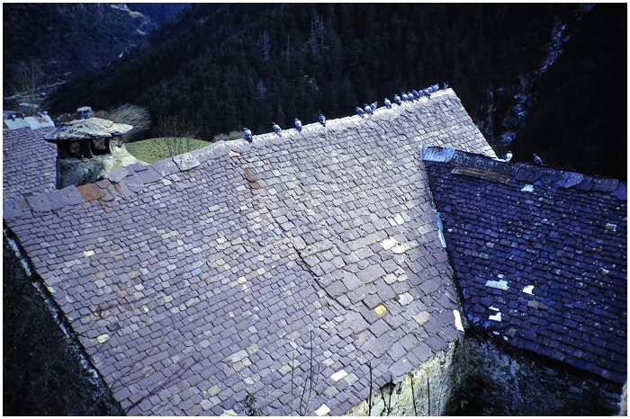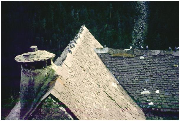 et une autre lumière. Les tuiles du toit sont des plaques plus ou moins