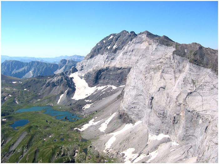 proue rocheuse. A droite, l'arête accidentée qui descend du Lenquo