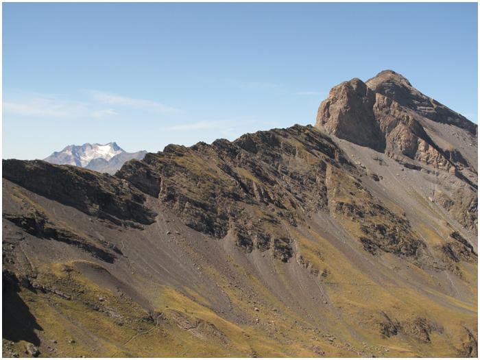 de Gavarnie, et surmontée d'une crête schisteuse sombre, depuis