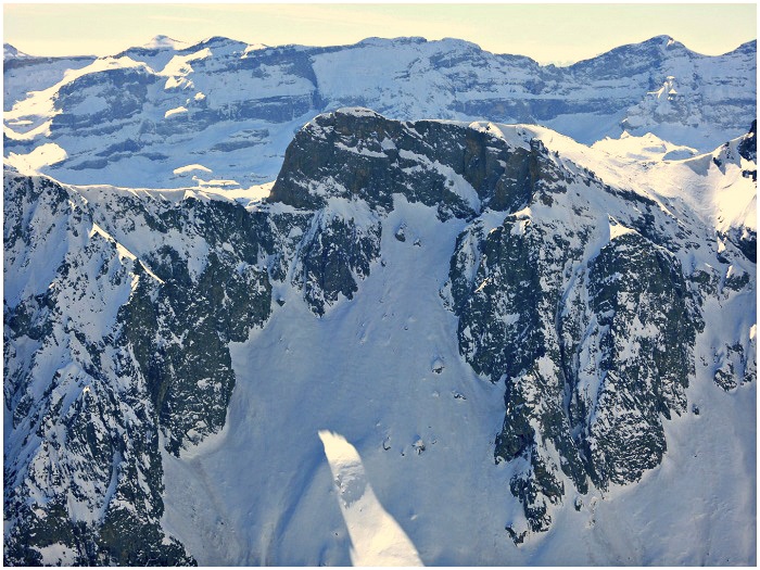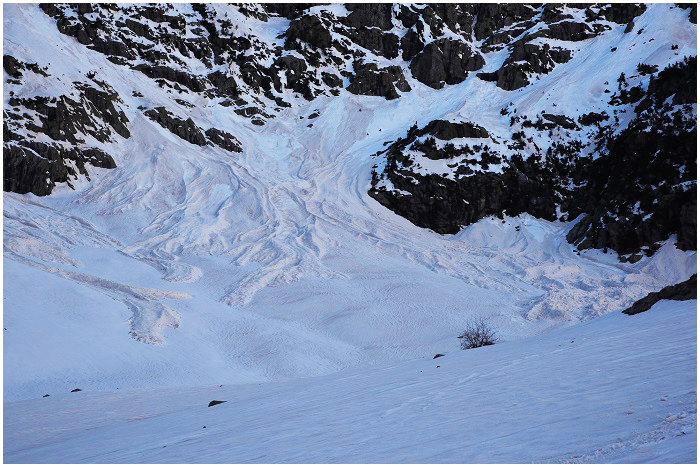 rocheuse de l'arête, le départ d'une grande avalanche