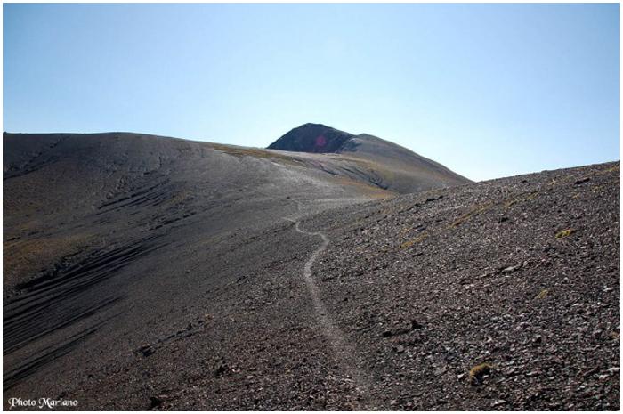 face ouest du pic de l'Aiguillette par un sentier étroit sur des pentes