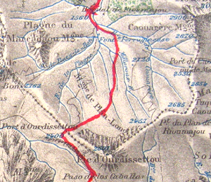 la carte d'Etat-major, cet itinéraire. Entre l'hospice de Rioumajou