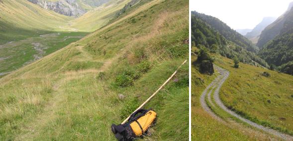 le versant espagnol, le chemin se déroule sur des pentes plus douces
