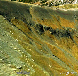 et blanche), il est recoupé et masqué par les lacets d'une piste