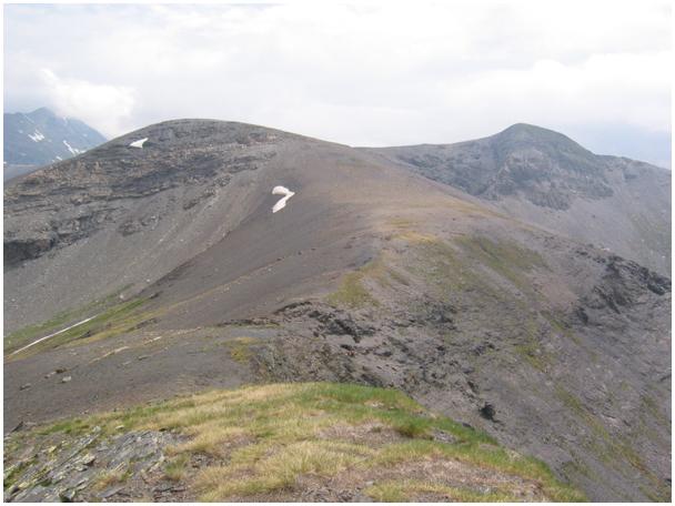 gauche, et de Fulsa (2858 m), à droite, dans l'axe de la crête.