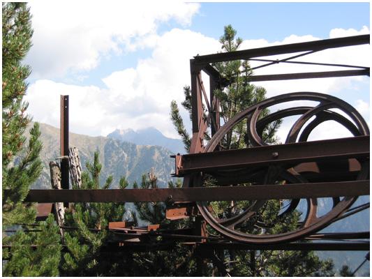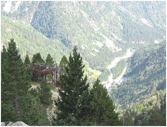 aérien qui transportait le minerai des mines du pic Liena de l'Hôpital